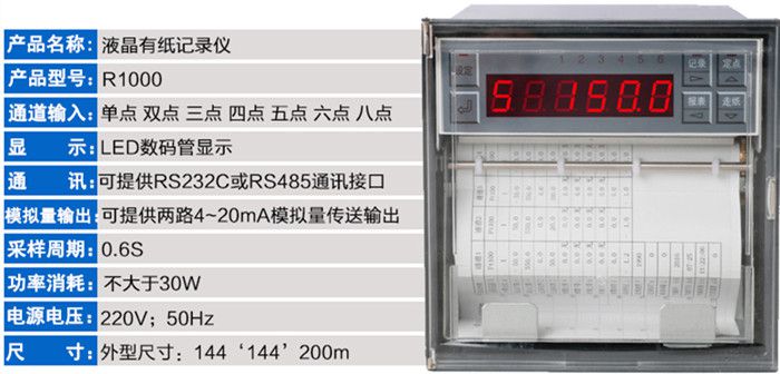 LK-R1000有紙記錄儀8路萬能輸入液晶顯示有紙記錄儀,可輸入標(biāo)準電流、標(biāo)準電壓、熱電偶、熱電阻等多種信號。具有傳感器配電輸出、繼電器報警輸出功能;采用高精度熱敏打印機,實現(xiàn)數(shù)據(jù)、曲線和混合打印;具有高清晰OLED液晶顯示功能;獨立的紙倉設(shè)計,使打印紙安裝方便快捷。